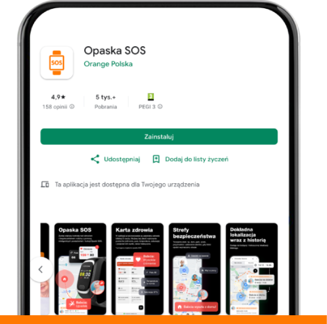 Wejdź do pobranej wcześniej aplikacji Opaska SOS